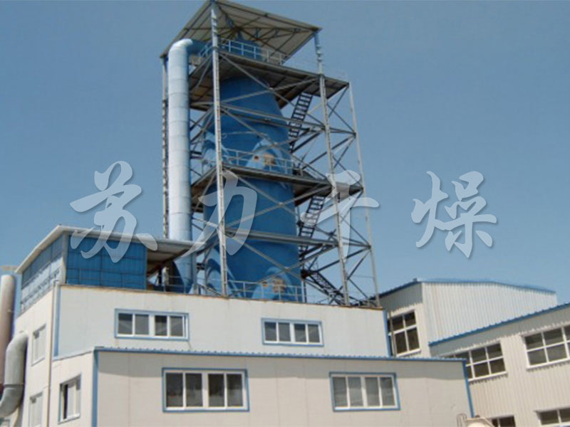 壓力噴霧干燥機工作過程為:料液通過隔膜泵高壓輸入,噴出霧狀液滴,然后同熱空氣并流下降,大部分粉粒由塔底排料口收集,廢氣及其微小粉末經旋風分離器分離,廢氣由抽風機排出,粉末由設在旋風分離器下的收粉筒收集,風機出口處還可裝備二級除塵裝置,回收率在96%-98%。