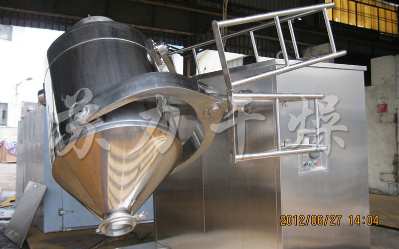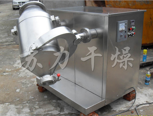 結構:該機由機座、傳動系統、電器控制系統、多向運動機構、混合筒等部件組成。與物料直接接觸的混合筒采用優質不銹鋼材料制造,桶體內外壁均經鏡面拋光。